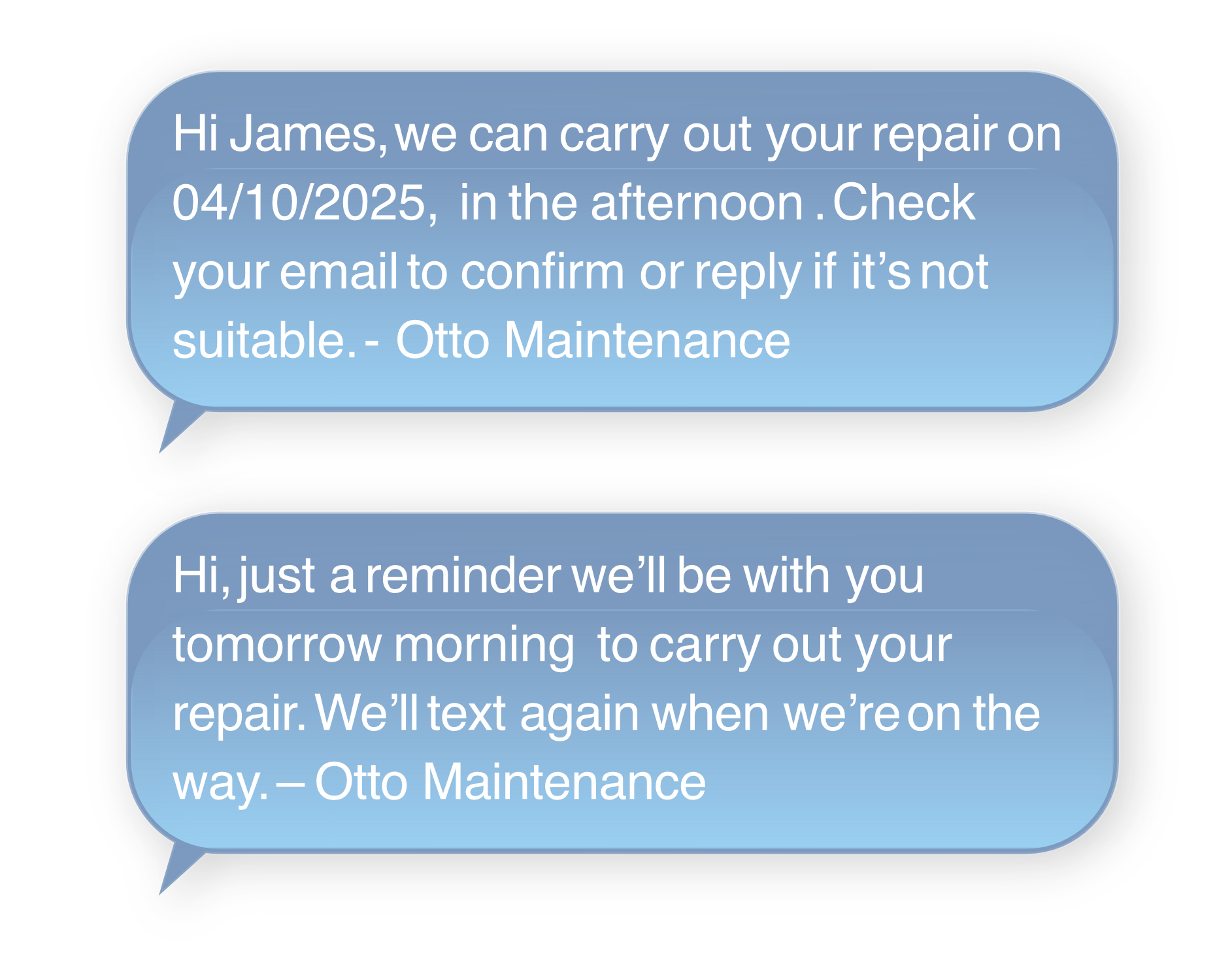 Tenants receive instant appointment confirmations, SMS reminders, and on-the-day updates, so they’re never left wondering if someone will show up.